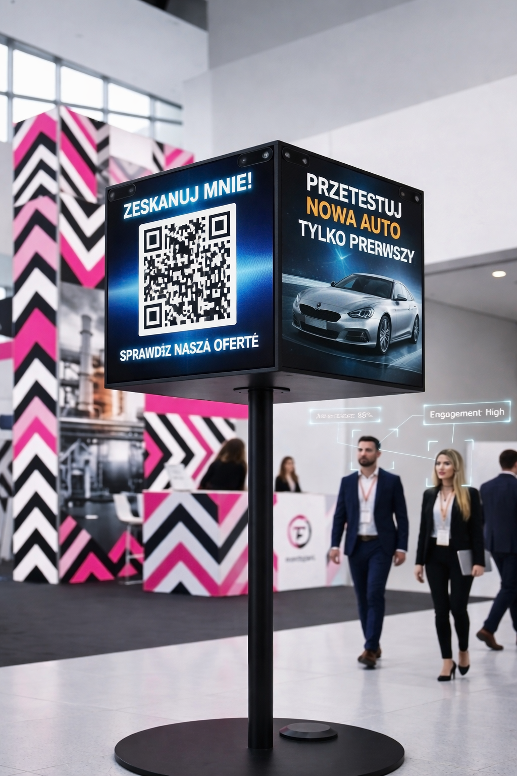 konferęcje, i eventy „Inwestujesz tysiące w stoisko, które staje się niewidzialne w szumie tradycyjnych ekranów i roll-upów”.